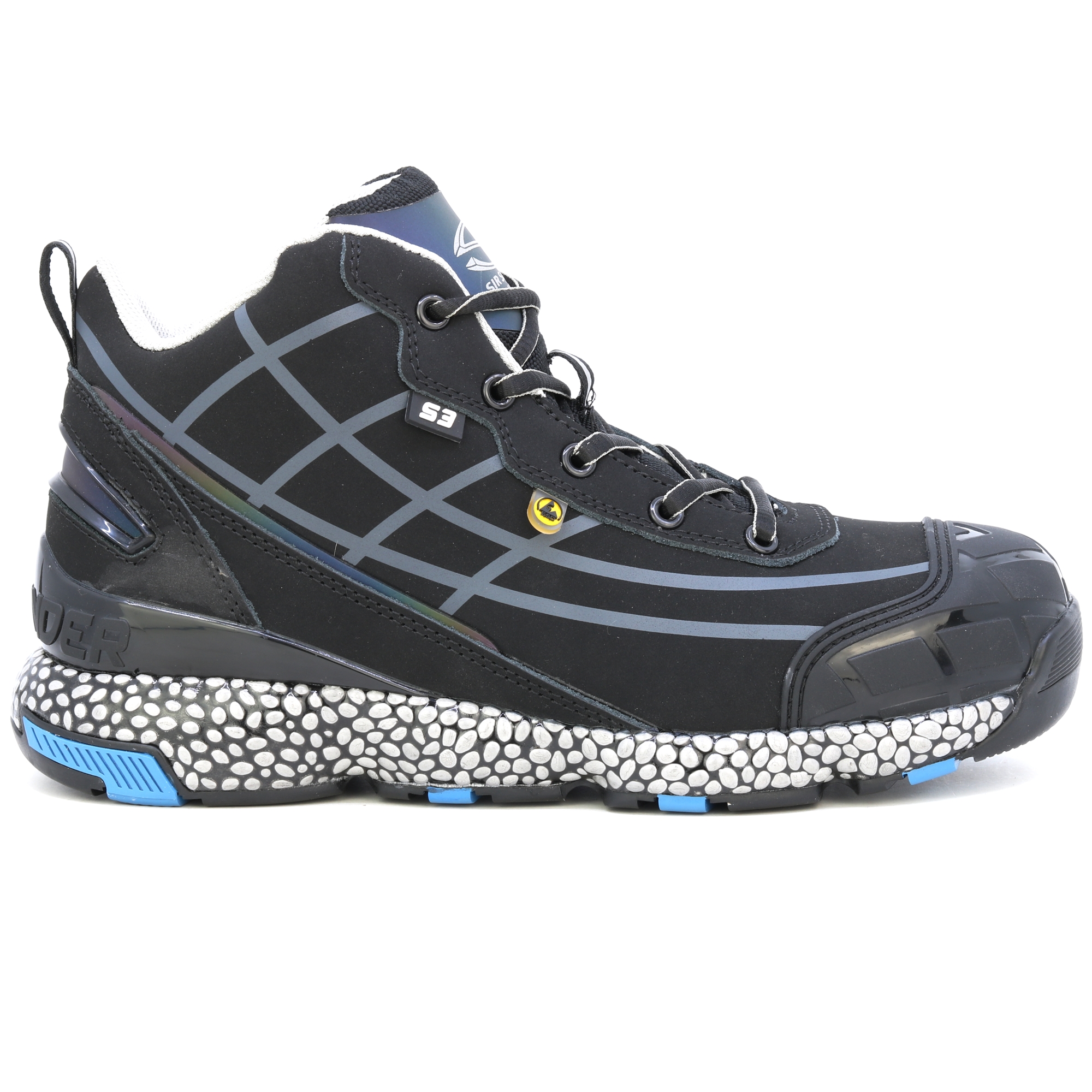 AUFMERKSAMKEIT! Extrem leichte und bequeme Arbeitsschuhe. Das patentierte Responder-System vermittelt das Gefühl, einen Fuß in Schaumstoffpantoffeln zu haben und garantiert gleichzeitig, dass Sie sich auch nach dem ganzen Tag Tragen nicht müde fühlen! Halbschuhe mit ultradynamischem Design, mit Aluminium-Zehenkappe und einer Verbundzwischensohle mit einer konstanten Dicke von 4 mm. Ausgestattet mit einem Obermaterial aus Action-Nubukleder mit Schnürsenkeln und reflektierenden Einsätzen. E-TPU Responder/Gummisohle sorgt für hervorragende Elastizität und Dämpfungswirkung: Die Zwischensohle aus expandiertem thermoplastischem Polyurethan bedeckt den gesamten Fuß und bietet Flexibilität und voll reaktionsfähige Dämpfung. Die Gummisohle betont dank ihrer tiefen Längsrillen die Flexibilität der Sohle und sorgt für hervorragenden Halt auf allen Untergründen. Die RESPONDER-Zwischensohle besteht aus einer Mischung, die Tausende von E-TPU-Perlen mit hoher Elastizität und Haltbarkeit kombiniert. Futter und Perforation im Plantarbereich mit hervorragenden Anti-Schock-Eigenschaften. Antistatisch. Das Polyester-Mesh-Futter verfügt aufgrund seines hochsaugfähigen Gewebes und seiner Struktur über eine hervorragende Drainage. Hauptmerkmale: Die patentierte RESPONDER-Technologie in der Zwischen- und Einlegesohle sorgt für eine hervorragende Reaktionsdämpfung, extreme Leichtigkeit und Flexibilität auf der gesamten Fußoberfläche und gewährleistet so eine hervorragende Leistung auch nach längerem und intensivem Gebrauch. Der Fersenstabilisator beugt Fußermüdung vor und verbessert die Fußstabilität.