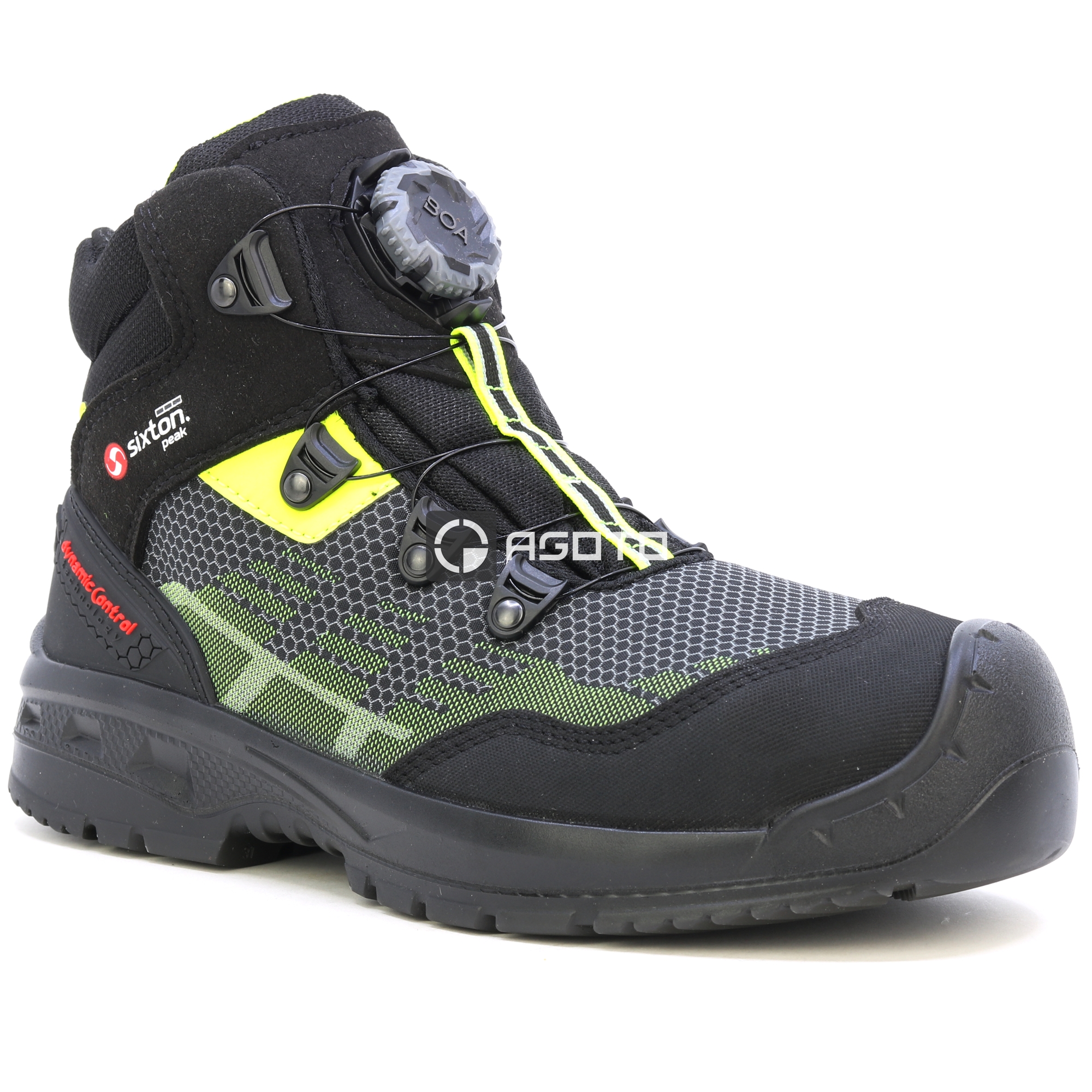 Der Sixton Sestriere S3 BOA ESD ist ein Hochleistungs-Arbeitsschuh, der auf maximale Sicherheit und Komfort ausgelegt ist. Das Obermaterial besteht aus einer Kombination aus MicroFiber und MicroFiber Wildleder mit einer Dicke von 1,8–2,0 mm, ergänzt durch reflektierende Elemente und strapazierfähiges Perspair Hypertex-Material, das eine hohe Abriebfestigkeit gewährleistet. Das 3D Green Air Innenfutter mit einem Gewicht von 320 g sorgt für hervorragende Atmungsaktivität. Die Schuhe verfügen über eine herausnehmbare anatomische Einlegesohle QRS02 Green, die langlebig und stoßdämpfend ist, die Ermüdung des Fußes verringert und Feuchtigkeit ableitet. Zu den Schutzmerkmalen gehören die Aluminium-Zehenkappe Alu SXT 2.0, die bis zu 200 J stoßfest ist, und die KX-Anti-Perforations-Einlegesohle, die einen Durchtrittschutz bis 1100 N bietet. Die Dual-Density-PU-Sohle erfüllt den ESD-Standard, der Dadurch leiten die Schuhe statische Elektrizität effektiv ab und sind für die Arbeit mit empfindlichen elektronischen Geräten geeignet. Rutschhemmung ist nach SRC-Standard gewährleistet. Dank Boa®-Technologie lassen sich die Schuhe einfach und schnell über das Schnellschnürsystem mit 120 cm Schnürlänge binden. Für Stabilität sorgen die Systeme Dynamic Control und StabilActive, die Knöchel und Ferse bei seitlichen Bewegungen stützen und die Torsionsstabilität des Beins erhöhen, ohne die natürliche Bewegung einzuschränken.