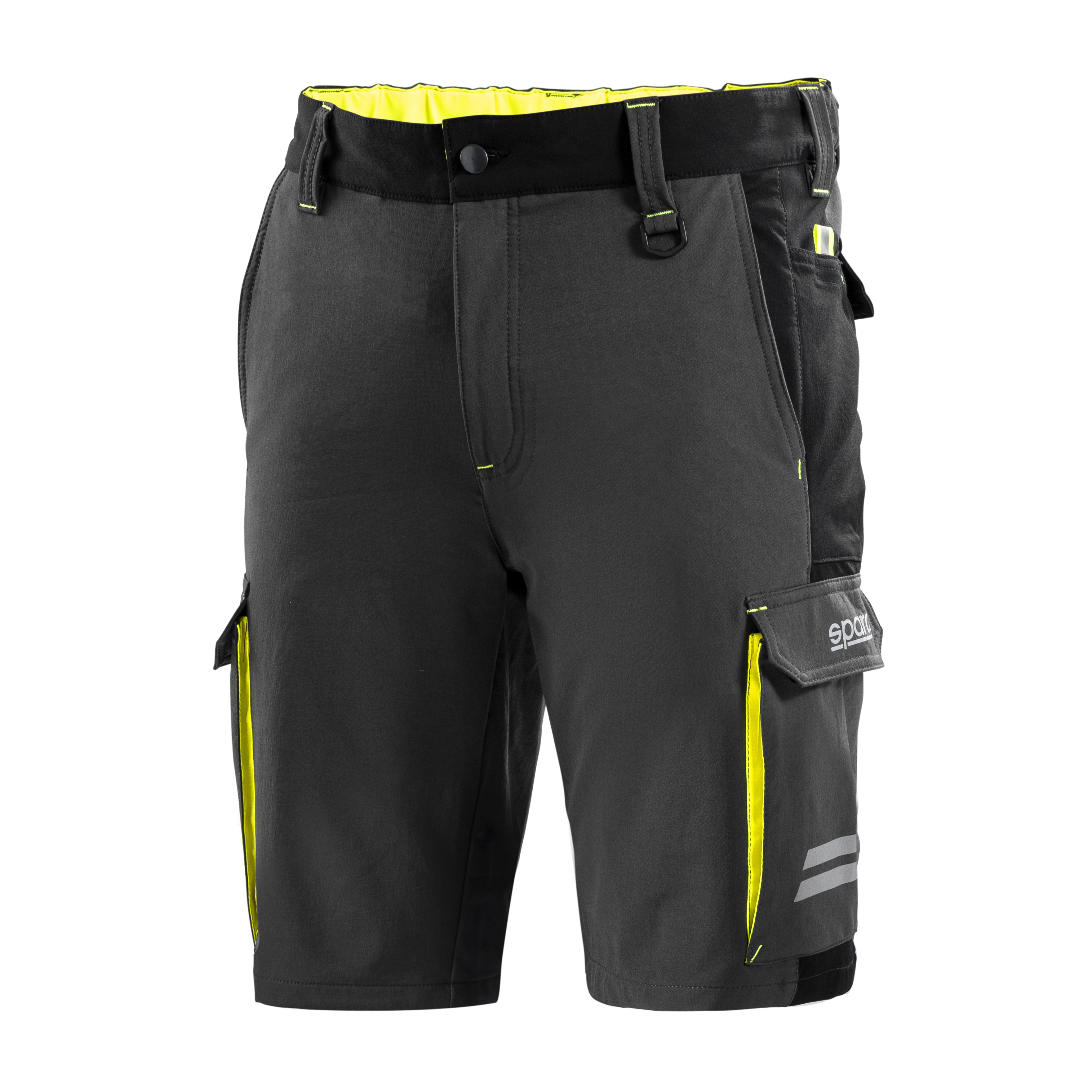 90 % Nylon - 10 % Spandex / 240 g/m2 Sparco reflektierende Logos, Reiß- und Knopfverschluss. Seiten- und Gesäßtaschen mit Patte, Klettverschluss und gut sichtbarem Schieber. Interne versteckte Seitentasche mit Reißverschluss, Kordelzug für Gegenstände, Ring auf der rechten Seite, Ausweishalter auf der linken Vorderseite, Gürtelschlaufe, gut sichtbare Reflexstreifen an den Seiten- und Gesäßtaschen.