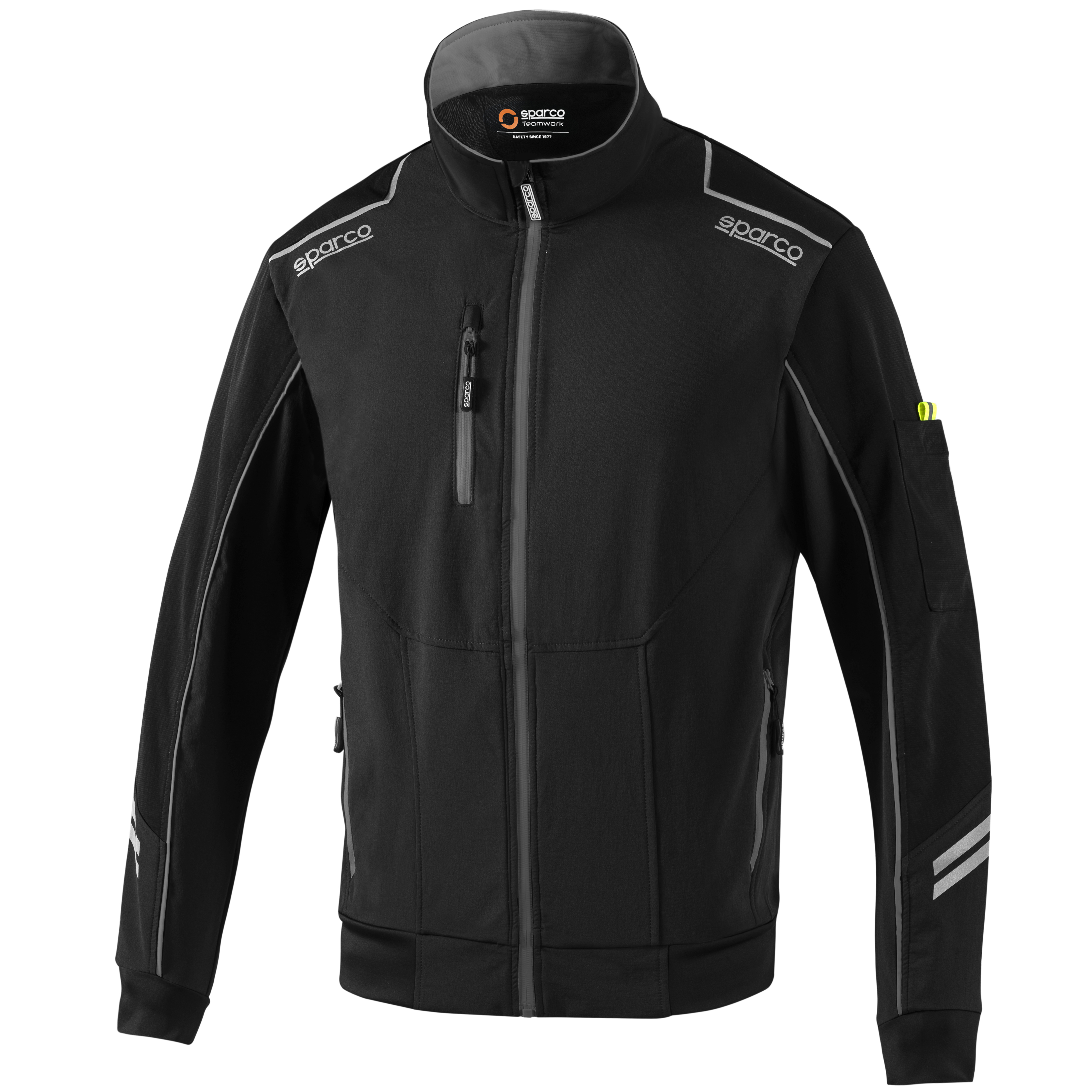 Leichte Softshell-Jacke von Sparco, die wind- und wasserdicht ist. Sie ist mit einem Fleece-Innenfutter ausgestattet. Material: 90 % Nylon - 10 % Spandex / 240 g/m2 Innen: 100 % Polyester (Polarfleece) Reflektierende Sparco-Logos, verstärkte Schulterpolster, Schultern und Ärmel aus abriebfestem Material. Beschichtete wasserdichte Reißverschlüsse, Seiten- und Brusttaschen mit gut sichtbaren Reißverschlüssen, Reflexstreifen an den Ärmeln, Superstretch-Stoff an den Bündchen, verstellbares Innenfutter für maximale Passform.
