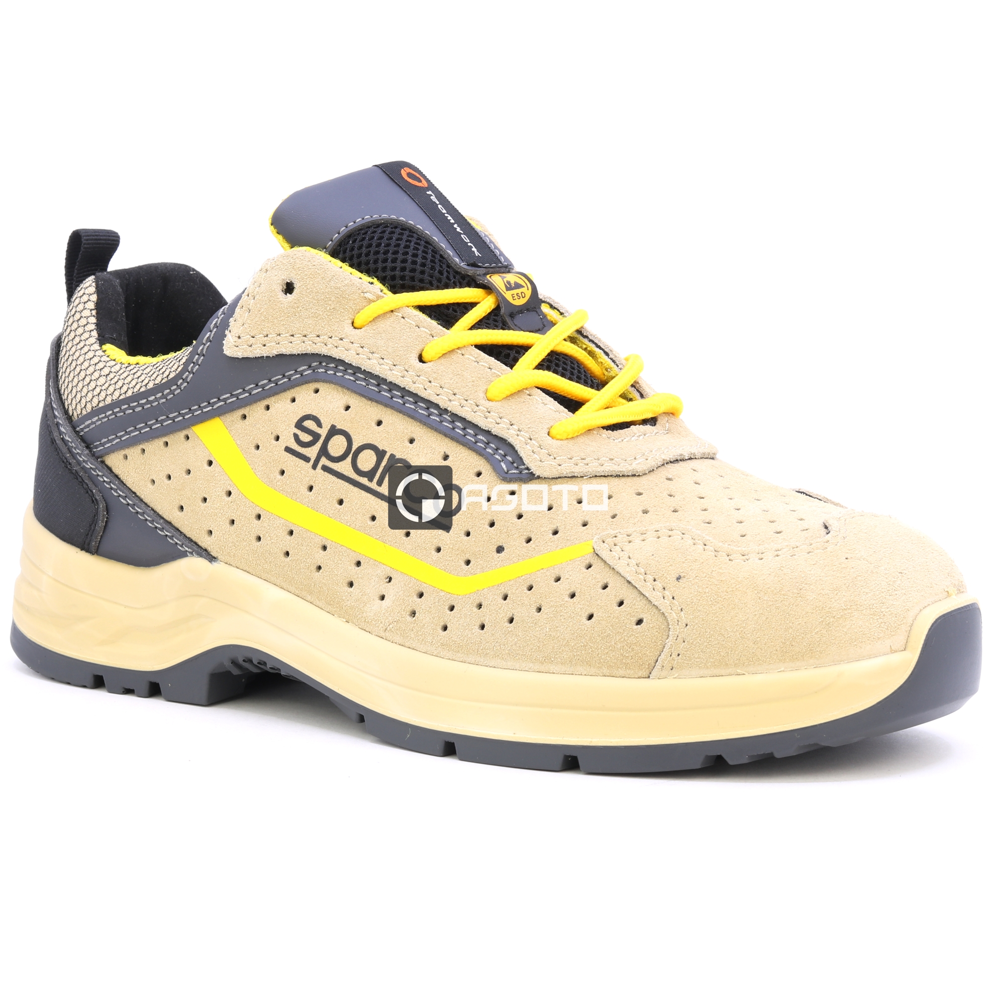 Vom Rennsport abgeleitete Schuhe. Sicherheitsschuh gemäß der neuen Norm ISO 20345:2022, aus feinem wasserabweisendem Wildleder, „flexgrip+“ Bi-Density-PU-Sohle mit speziellem Absatz, der die Anforderungen für Leitergriff (LG) erfüllt. leicht und für alle Zwecke geeignet. KOSTENLOSE Schnürsenkel im Lieferumfang enthalten