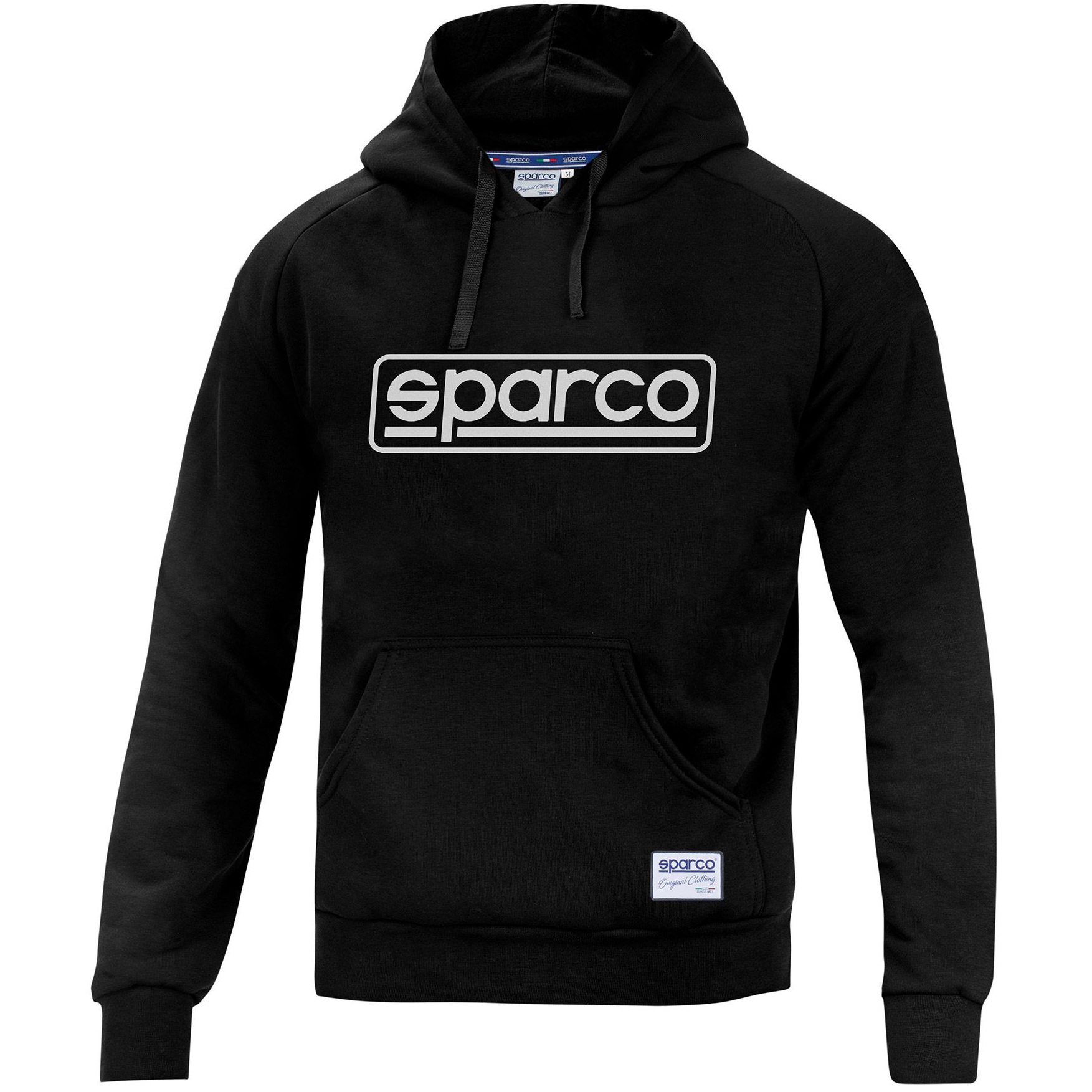Sparco Frame-Sweatshirt. Ein bequemes, modernes Sweatshirt, das ideal für jeden Autofan ist. Kapuzenpullover. Große Vordertasche. ZUSAMMENSETZUNG: 65 % Baumwolle - 35 % Polyester (280 g/m2).