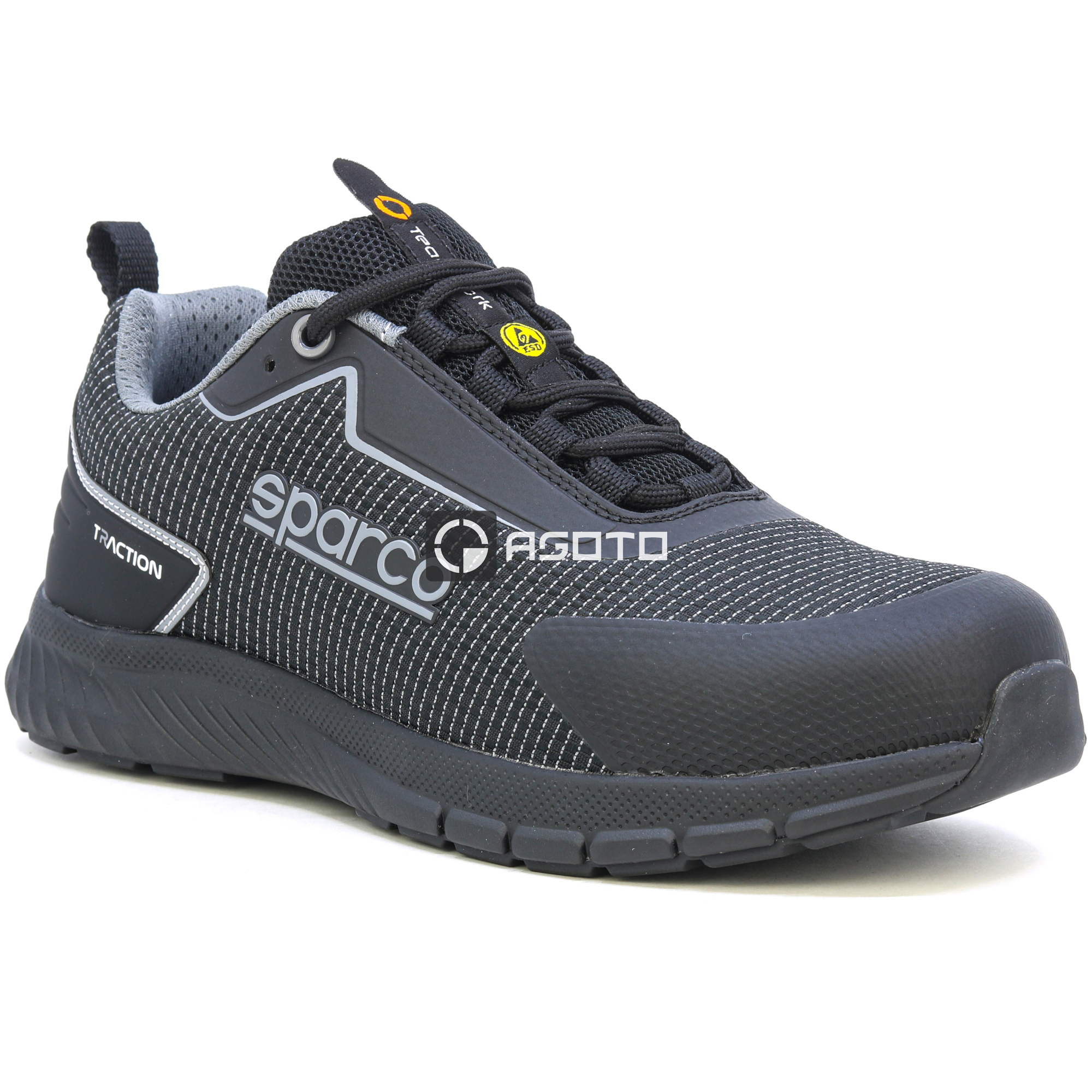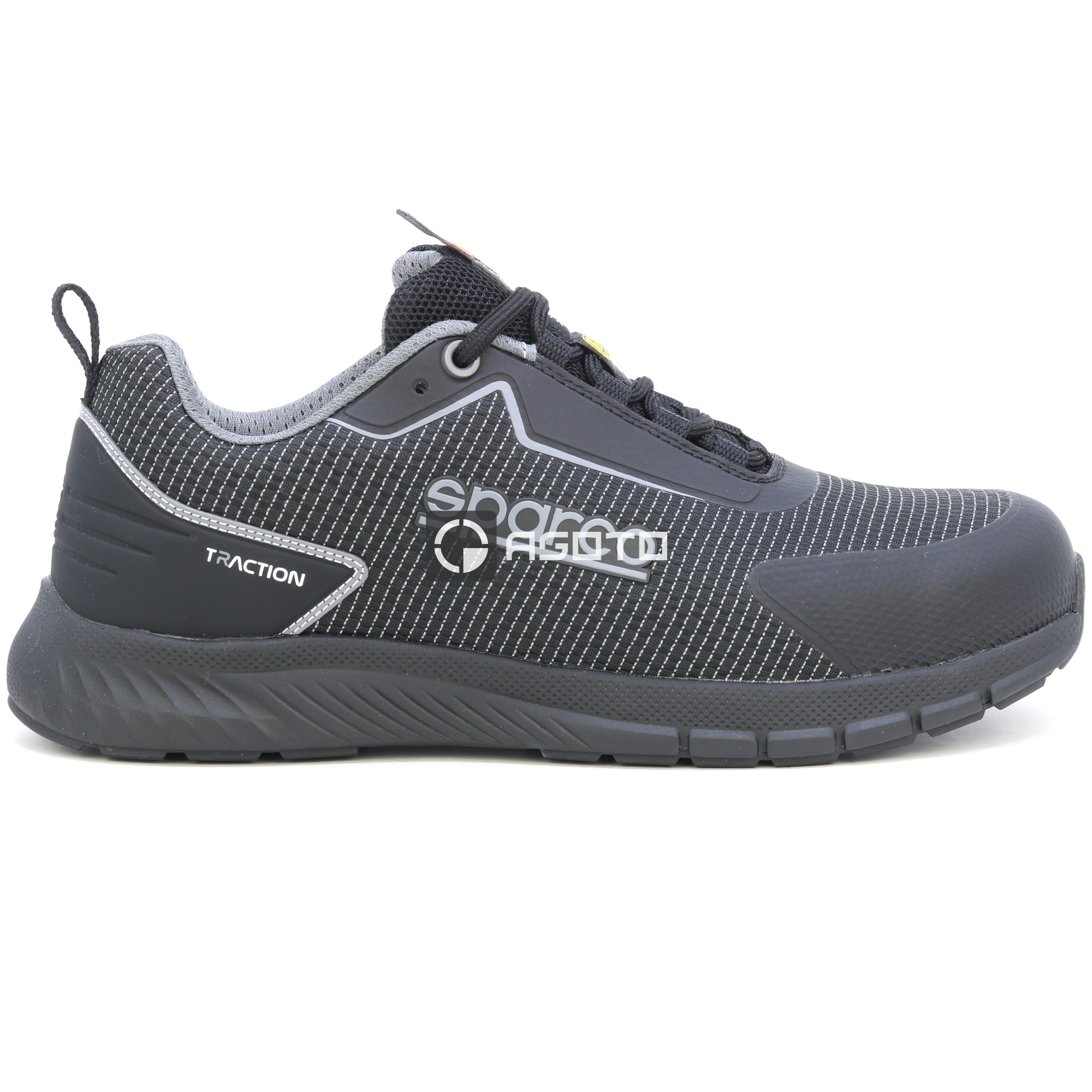 Die schwarzen Herren-Arbeitsschuhe Fuji S1PS ESD von SPARCO sind die ideale Wahl für Männer, die Sicherheit, Komfort und modernes Design suchen. Diese Schuhe erfüllen den Sicherheitsstandard S1PS, der dank einer hochwertigen Zehenschutzkappe aus Verbundwerkstoff und einer rutschfesten Sohle Zehenschutz garantiert und so die Rutschgefahr auf verschiedenen Oberflächen minimiert. Die ESD-Technologie (Electrostatic Discharge) schützt vor elektrostatischer Entladung, was in sensiblen Arbeitsumgebungen von entscheidender Bedeutung ist. Das leichte und atmungsaktive Material sorgt für ganztägigen Tragekomfort, während das attraktive schwarze Design mit von der Motorsportmarke SPARCO inspirierten Details dem Schuh einen stilvollen Look verleiht. Die perfekte Kombination aus Sicherheit und Stil für anspruchsvolle Arbeitsbedingungen.