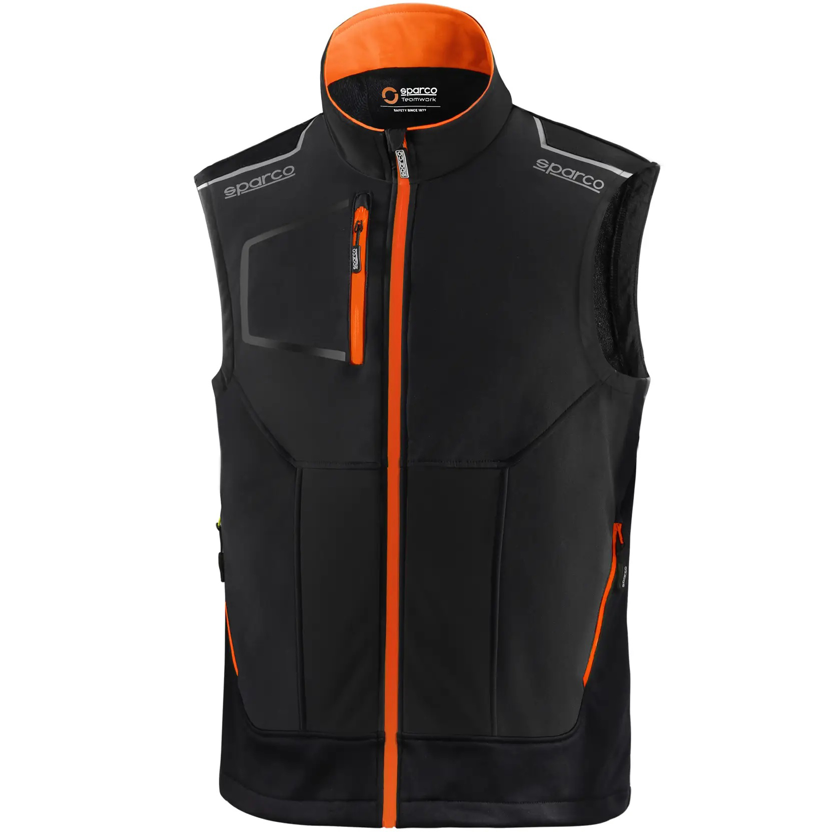 Eine wind- und wasserdichte Sparco-Softshellweste. Es ist mit einem Fleece-Innenfutter ausgestattet. Material: 90 % Nylon – 10 % Spandex / 240 g/m2. Innen: 100 % Polyester (Polarfleece), reflektierende Sparco-Logos, verstärkte Schulterpolster aus abriebfestem Material. Beschichtete wasserdichte Reißverschlüsse, Seiten- und Brusttaschen mit gut sichtbaren Reißverschlüssen, verstellbares Innenfutter für maximale Passform.