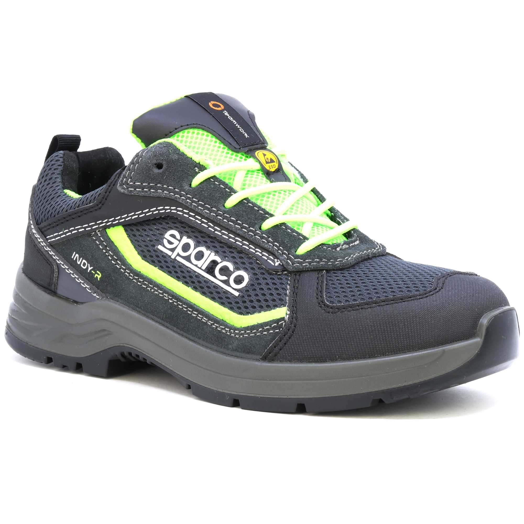 Vom Rennsport abgeleitete Schuhe. Sicherheitsschuh gemäß der neuen Norm ISO 20345:2022, aus feinem wasserabweisendem Wildleder, „flexgrip+“ Bi-Density-PU-Sohle mit speziellem Absatz, der die Anforderungen für Leitergriff (LG) erfüllt. leicht und für alle Zwecke geeignet. KOSTENLOSE Schnürsenkel im Lieferumfang enthalten
