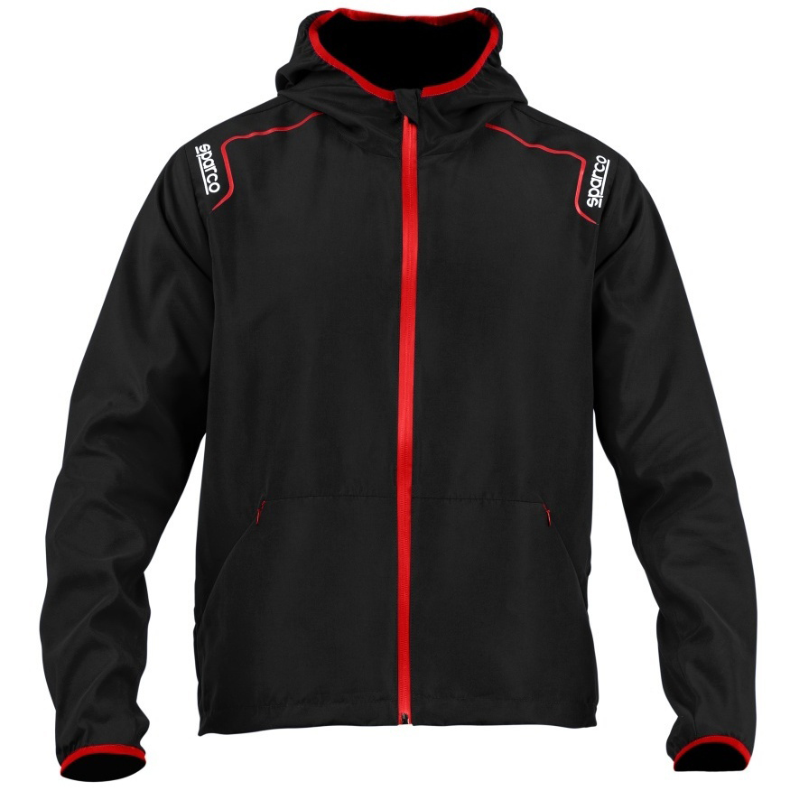 Winddichte Jacke mit Kapuze. Weiches und leichtes wasserabweisendes Polyestergewebe. Beschichtete Reißverschlüsse mit gummierten Abziehern. Elastische Bündchen und Saum.