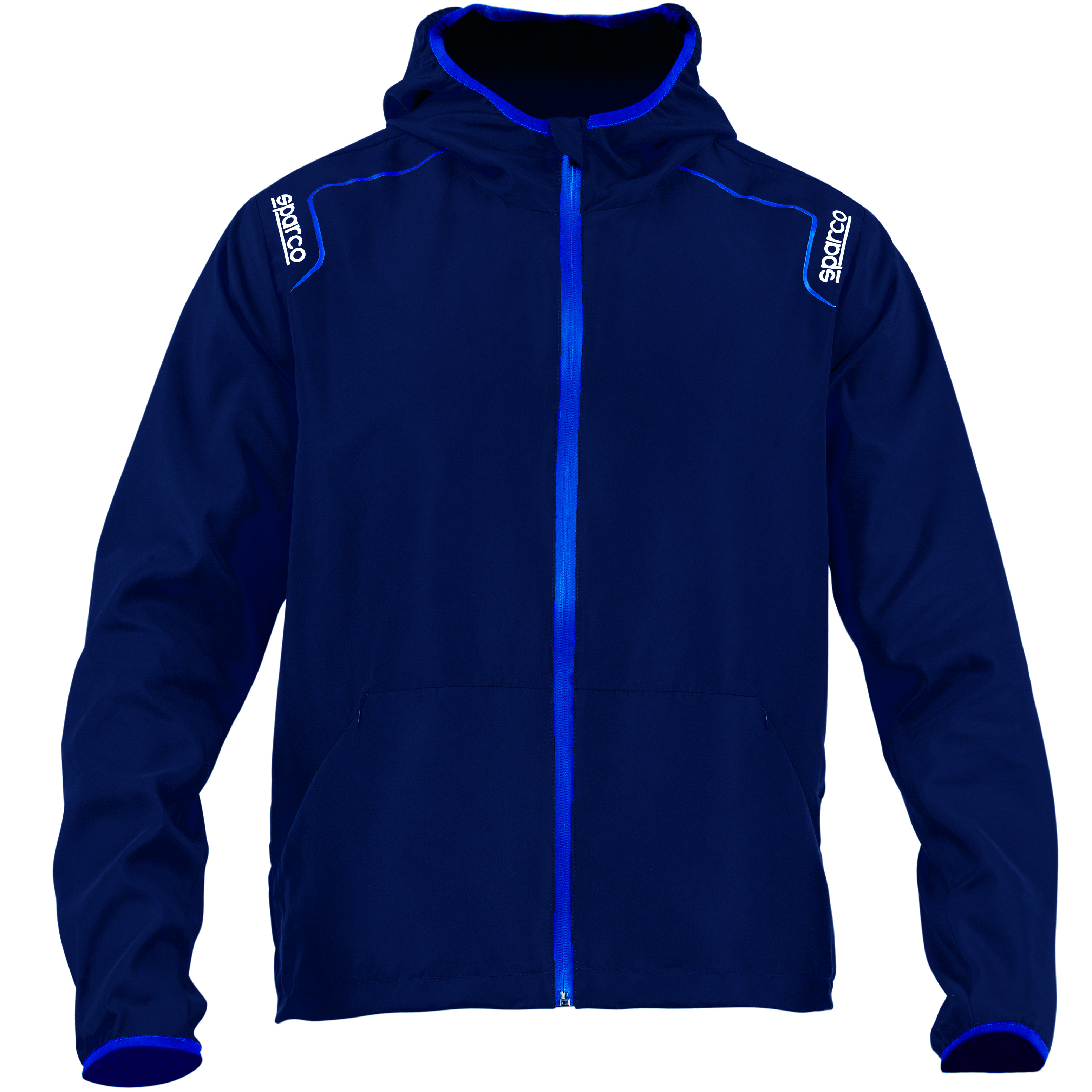 Winddichte Jacke mit Kapuze. Weiches und leichtes wasserabweisendes Polyestergewebe. Beschichtete Reißverschlüsse mit gummierten Abziehern. Elastische Bündchen und Saum.