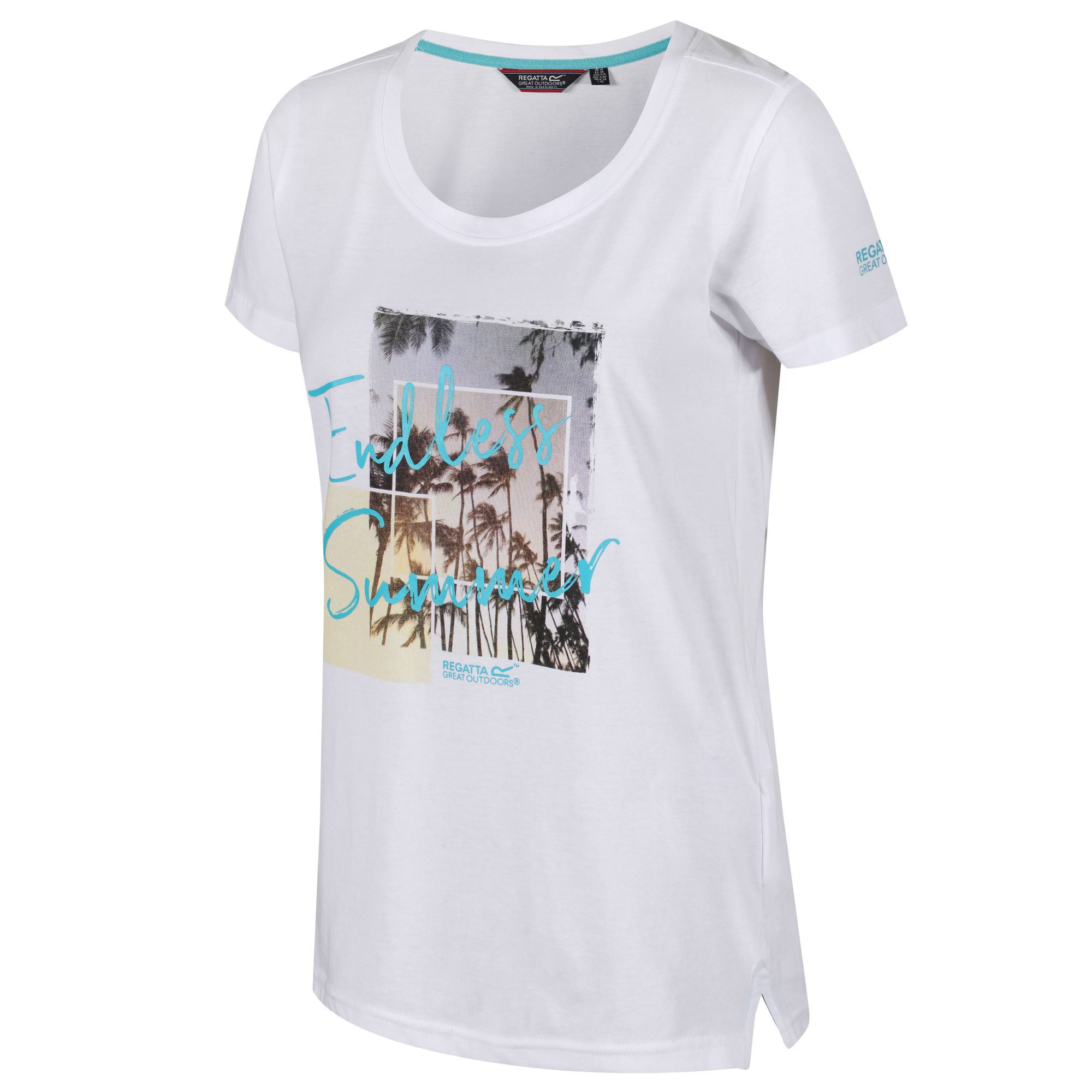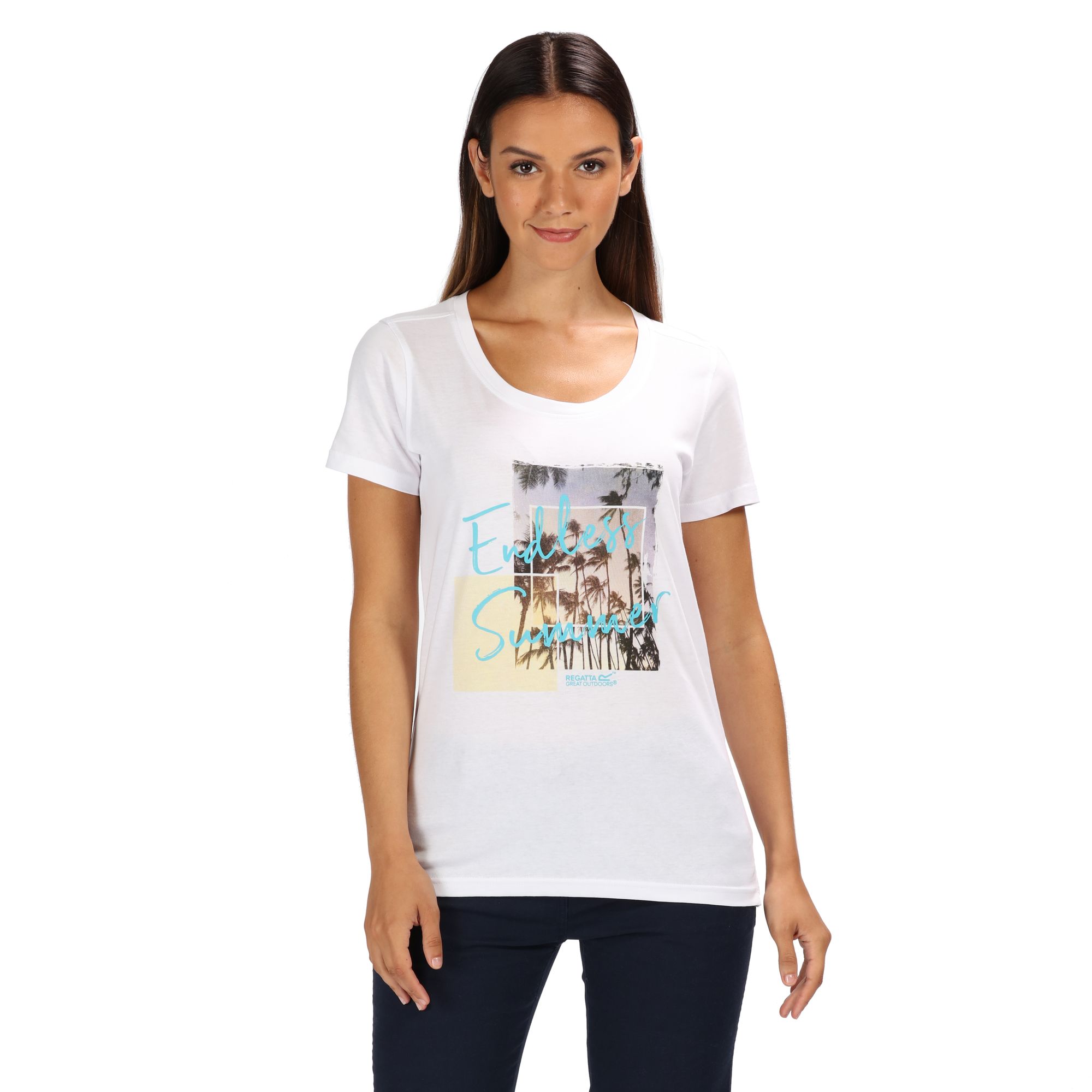 Dámské tričko s krátkým rukávem Regatta Filandra III. Technologie Coolweave s chladícím účinkem. Bavlněná vlákna mají zcela přirozený chladicí účinek přímo na kůži. Potisk na přední straně. Materiál: 100% bavlna.
